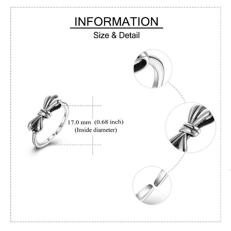 Specification:Color:Retro SilverSize:17.0mmMaterial:925 silverPackage Include:1* Ring1* Delicate jewelry box1* Gift bag1* Maintenance instruction1* Silver polishing clothSterling Silver Bow adjustable Opening Ring$24.99PriceColor*Retro SilverSize*17.0mmQuantity*Add to CartBuy Now